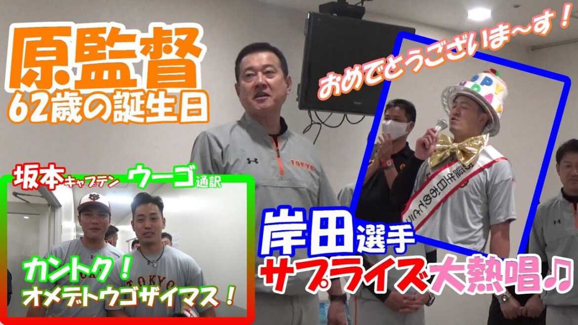 #坂本勇人 キャプテンは、ウーゴ 通訳と「監督!おめでとうございます!」#岸田行倫 選手は、チームを代表してバースデーソングを熱唱しました🎤