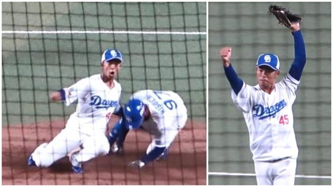 【紅白戦】宇佐見が樋口の盗塁を阻止!超速タッチの龍空がドヤ顔でアウトをアピール!(2023年11月5日)