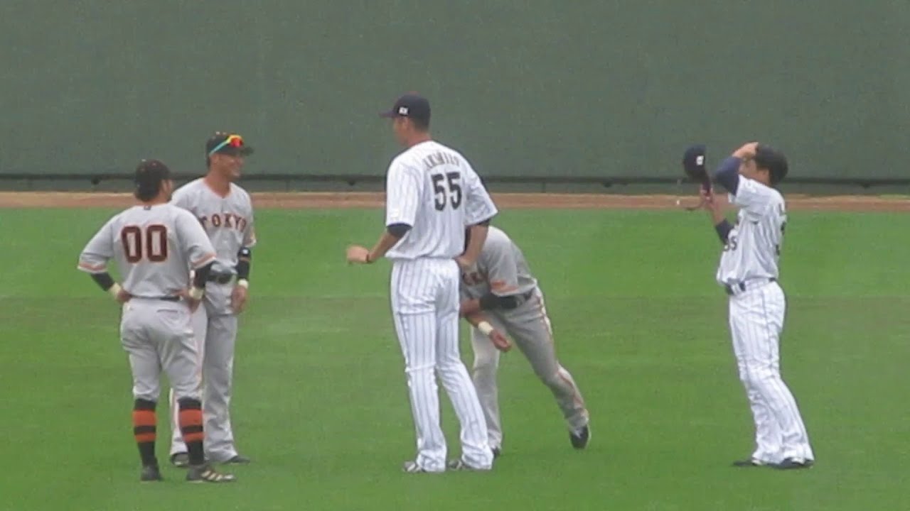 侍ジャパンと巨人の練習試合、試合開始前の両チームの交流