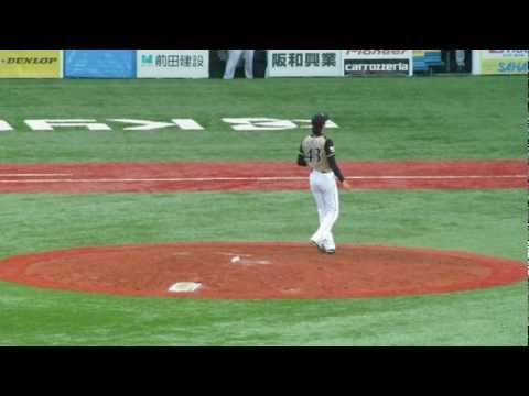 2011年4月21日に京セラドームで行われた対オリックス戦での一コマ。7回無失点に抑えた先発武田勝投手に続き、2番手として登板した増井投手のピッチングです。
