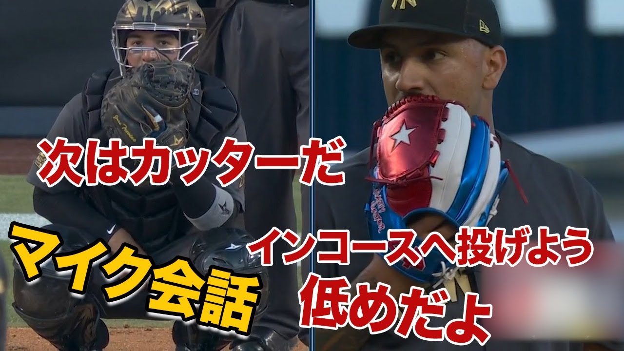 オールスター ゲームでヤンキースのネスター・コーテズ投手とホセ・トレビーノ捕手のインカム会話