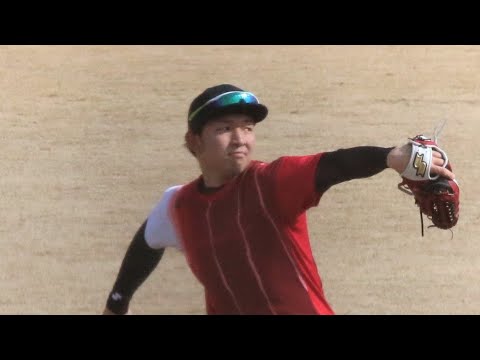 2018年夏の甲子園優勝投手。昨年は、吉田輝星投手とともにスーパールーキーとしてこの時期鎌ヶ谷スタジアムをも沸かした柿木投手で、さすがに緊張気味でしたが、今年はリラックスモード。