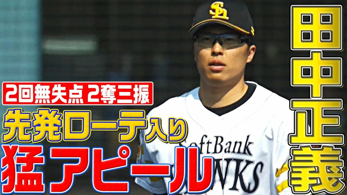 福岡ソフトバンクの先発として登板した田中正義が2イニングを6人ピシャリの完璧投球。先発ローテ入りへ好アピールを見せた!!