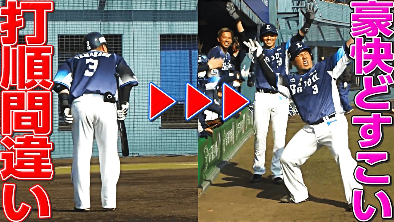 埼玉西武・山川穂高がまさかの珍。打順を間違え一度はベンチに戻るも、その後本当の打席では豪快なホームラン!今年初『どすこい』を決めた。