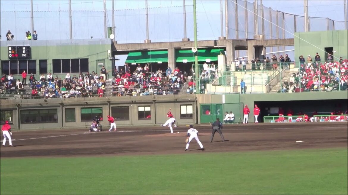 及川雅貴投手から田村俊介、中村健人、二俣翔一が3連打で1点を奪うも、2見事な中継プレーに2点目は取れず / 侍ジャパン vs 広島カープの練習試合・4回表