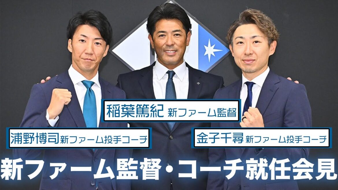 北海道日本ハムファイターズは11月18日(土)、新たに就任が決まった稲葉篤紀ファーム監督、金子千尋ファーム投手コーチ、浦野博司ファーム投手コーチの記者会見を千葉県鎌ケ谷市の球団施設で行いました。それぞれが選手時代に培ってきた経験を現役選手たちに還元しようと、力を込めて抱負を語りました。