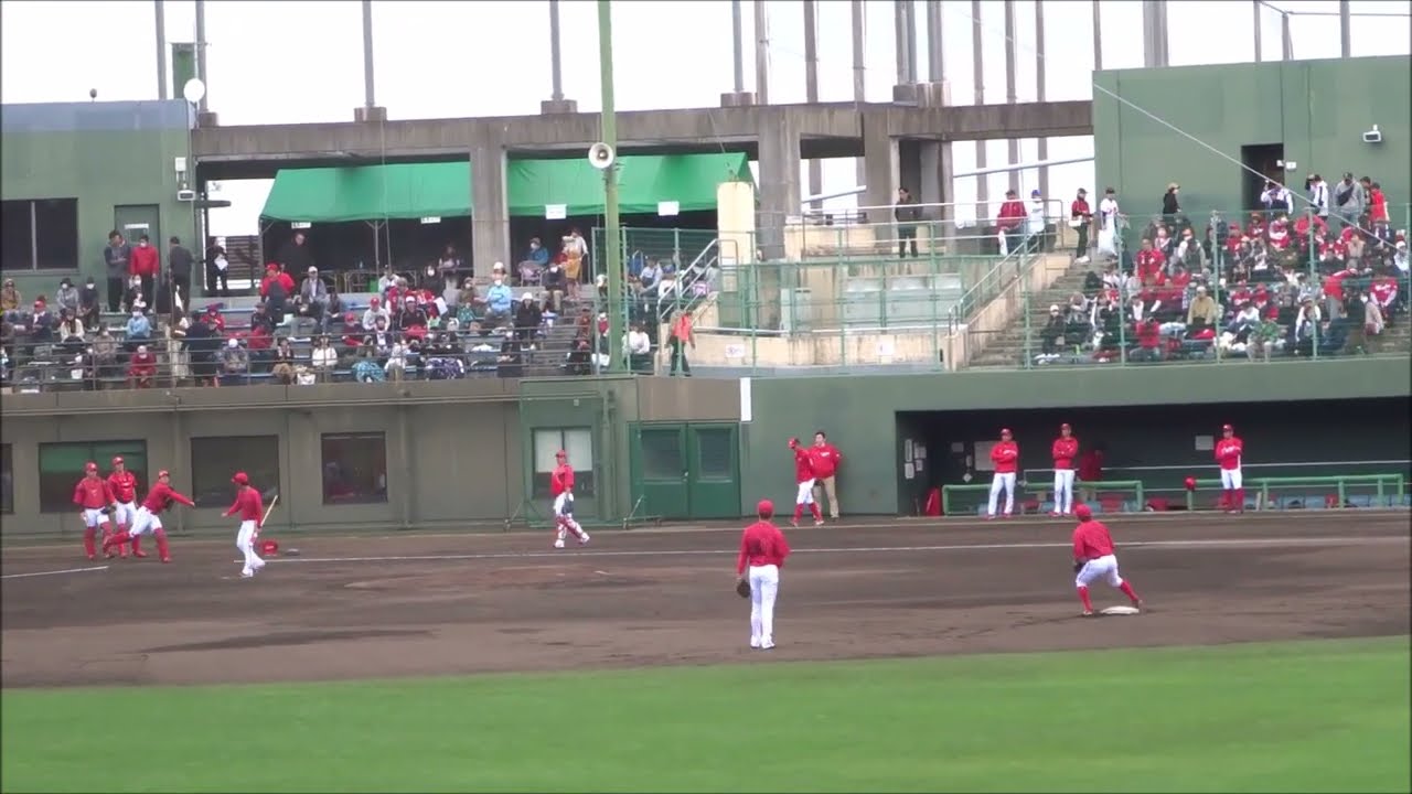 2023年11月12日(日)、宮崎市SOKKENスタジアムで開催された侍ジャパン2023との練習試合前の練習 Hiroshima Toyo Carpセカンド送球広島東洋カープ持丸泰輝清水叶人石原貴規髙木翔斗 NPBHUB.COM | The Fanbase of Nippon Baseball & Nippon Professional Baseball