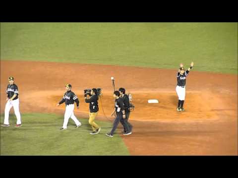 2015.10.29 神宮球場 2015日本シリーズ第5戦 東京ヤクルトスワローズ-福岡ソフトバンクホークス 試合終了後にヤクルトファンからのコールにこたえるホークス川島慶三