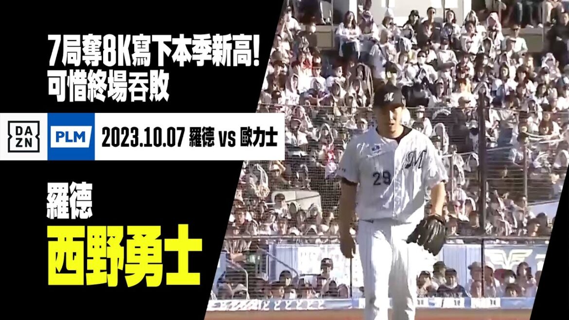 【日職】#西野勇士 7局奪8K寫下本季新高!可惜終場吞敗 2023.10.07 千葉羅德海洋x歐力士猛牛 #千葉羅德海洋 #歐力士猛牛 #太平洋聯盟例行賽 OTT【DAZN台灣🇹🇼】 💻https://www.dazn.com/zh-TW 📱APP store下載:https://reurl.cc/4o705V 📱Google play下載:https://reurl.cc/4o79kV Chiba Lotte Marines千葉ロッテマリーンズ西野勇士 NPBHUB.COM | The Fanbase of Nippon Baseball & Nippon Professional Baseball
