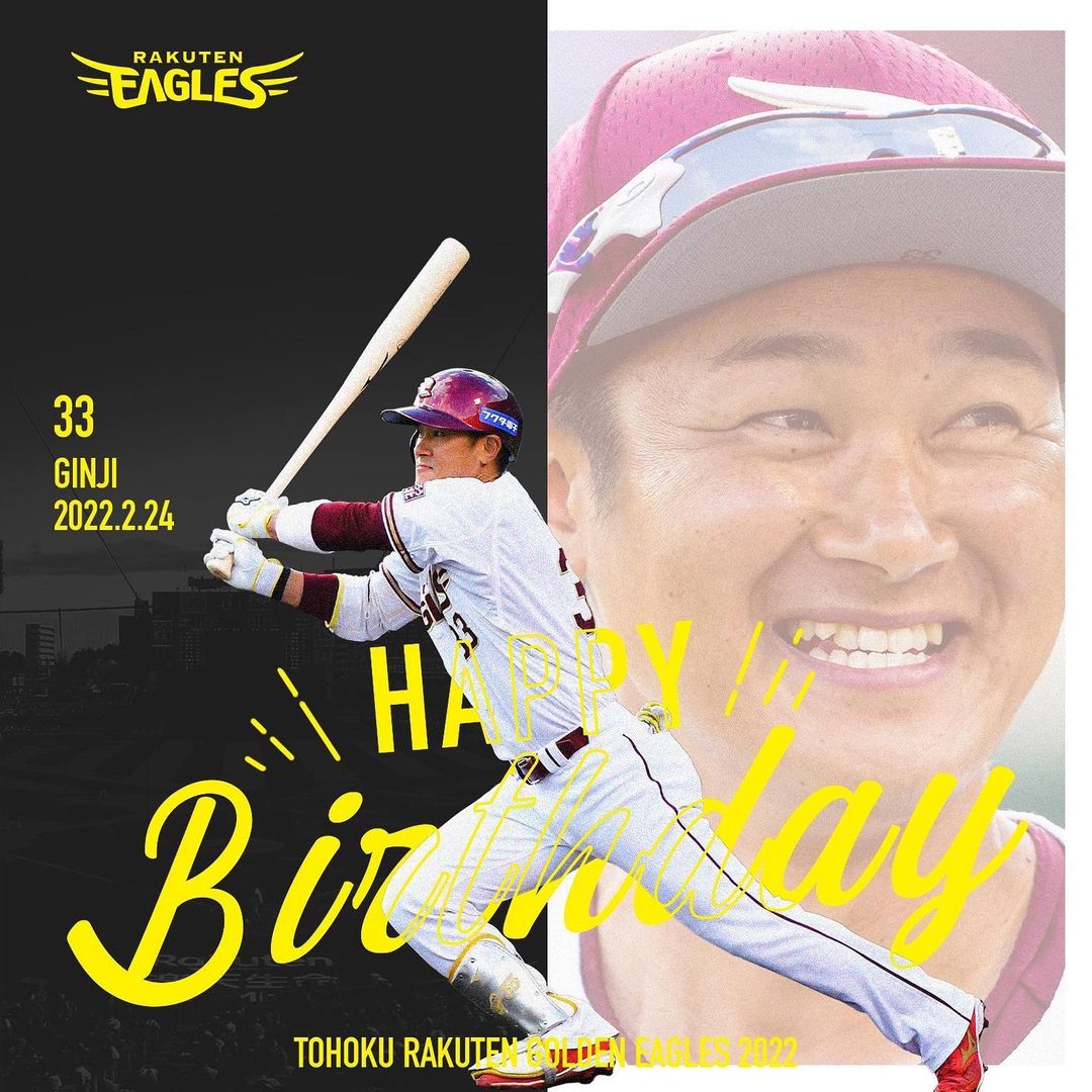 Tohoku-Rakuten-Golden-Eagles: 今日は銀次選手の34歳の誕生日 おめでとうございます お祝いメッセージをよろしくお願いします! #RakutenEagles #HappyBirthday #…