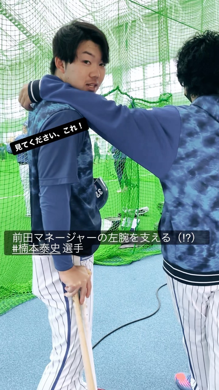 打撃投手をつとめる前田マネージャーの左腕を支えていた(⁉︎) #楠本泰史 選手。