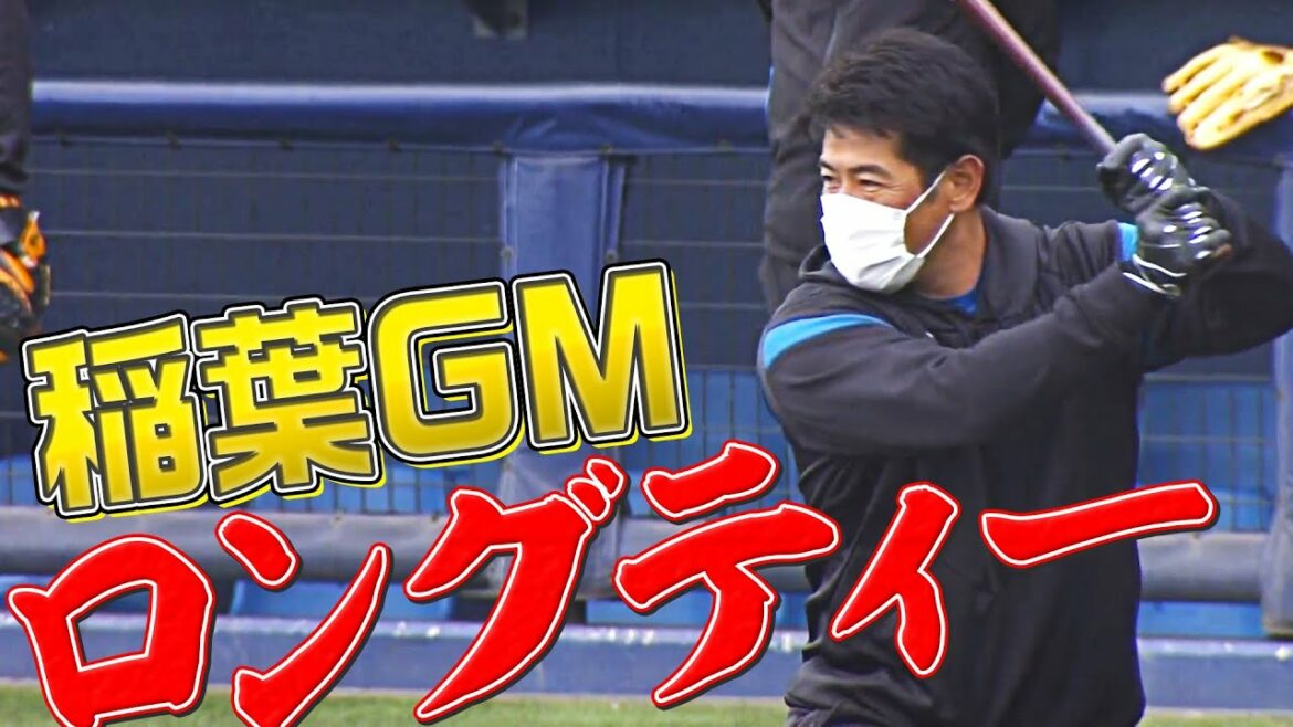 稲葉篤紀GMがロングティーを行い、現役さながらのスイングで柵越え打も披露しました。