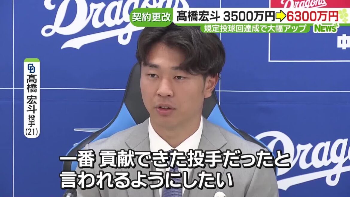 中日ドラゴンズの契約更改交渉が行われ高橋宏斗投手が大幅アップです。