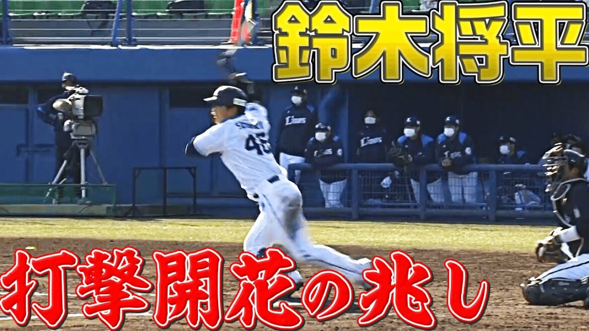 第2打席、第3打席で長打を放った埼玉西武・鈴木将平。打撃好調の鈴木将平の連続長打に平石コーチも顔をほころばせた。