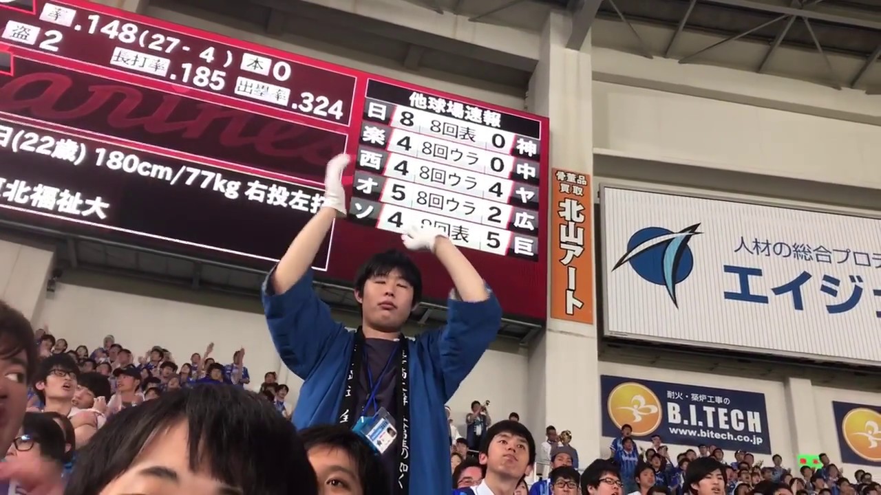 2018年6月14日vs千葉ロッテ@ZOZOマリンスタジアム 代打テーマ(0:13~)→応援歌(0:26~) 【歌詞】※暫定応援歌(下園辰哉など流用) それゆけ楠本 希望を乗せて 勝利の一打 かっとばせ ☆下園さん応援歌歌えない人多くて時代を感じました…ちなみに後ろにいた方は多分わざとだと思いますが、希望『を』乗せてが正しい歌詞です。 #37楠本泰史(外野手) 経歴(括弧内はプロチーム在籍年度) 花咲徳栄高等学校 東北福祉大学 横浜DeNAベイスターズ (2018 – ) #プロ野球YOKOHAMA DeNA BAYSTARS下園辰哉下園辰哉応援歌左打ち外野手応援歌楠本応援歌楠本泰史楠本泰史応援歌横浜DeNAベイスターズ流用応援歌 NPBHUB.COM | The Fanbase of Nippon Baseball & Nippon Professional Baseball