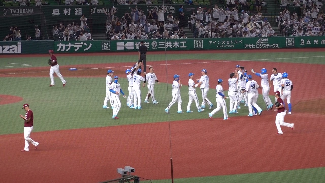 2021年9月23日(木)西武対楽天 20回戦 3-3の同点で引き分けを狙う楽天は酒居投手が登板 9回裏2アウトから森選手2塁打 中村選手申告敬遠 外崎選手四球で満塁 金子選手の代打 柘植選手 カウント1-2からフォークボールをレフト前に打ち返しました。 この日は見逃し三振が撮れずやや不満でしたが 最後に盛り上がって楽しめました。 Saitama Seibu Lionsサヨナラ勝ち埼玉西武ライオンズ柘植世那 NPBHUB.COM | The Fanbase of Nippon Baseball & Nippon Professional Baseball
