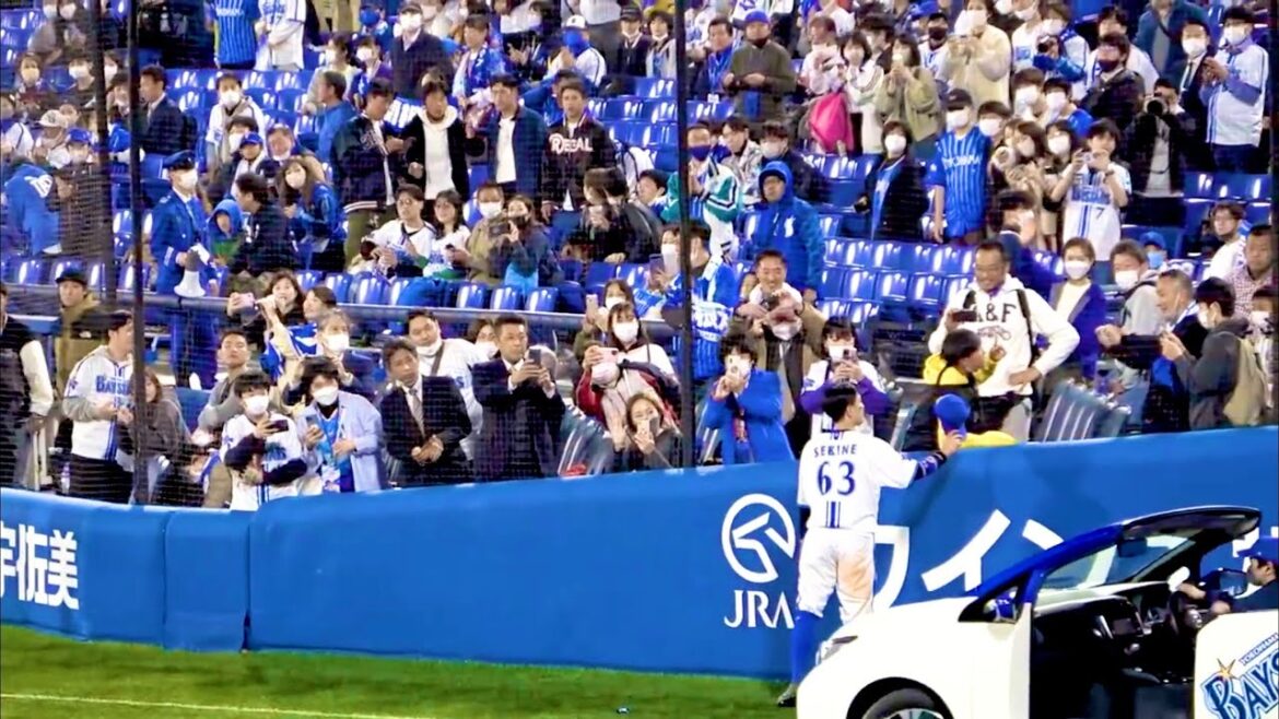 記念撮影に応じて、帽子までプレゼントするナイスな関根大気 横浜DeNAベイスターズ 2023/4/6