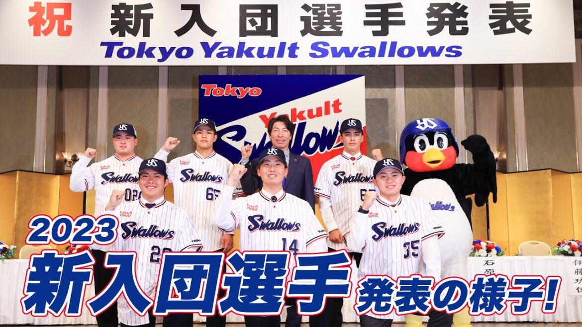 4日(月)、都内で「2023新入団選手発表会」が行われ、ドラフトで指名された6名の選手が登壇。初めて東京ヤクルトスワローズのユニホームに袖を通し、プロでの意気込みなどを語りました!発表会の模様をお届けします!