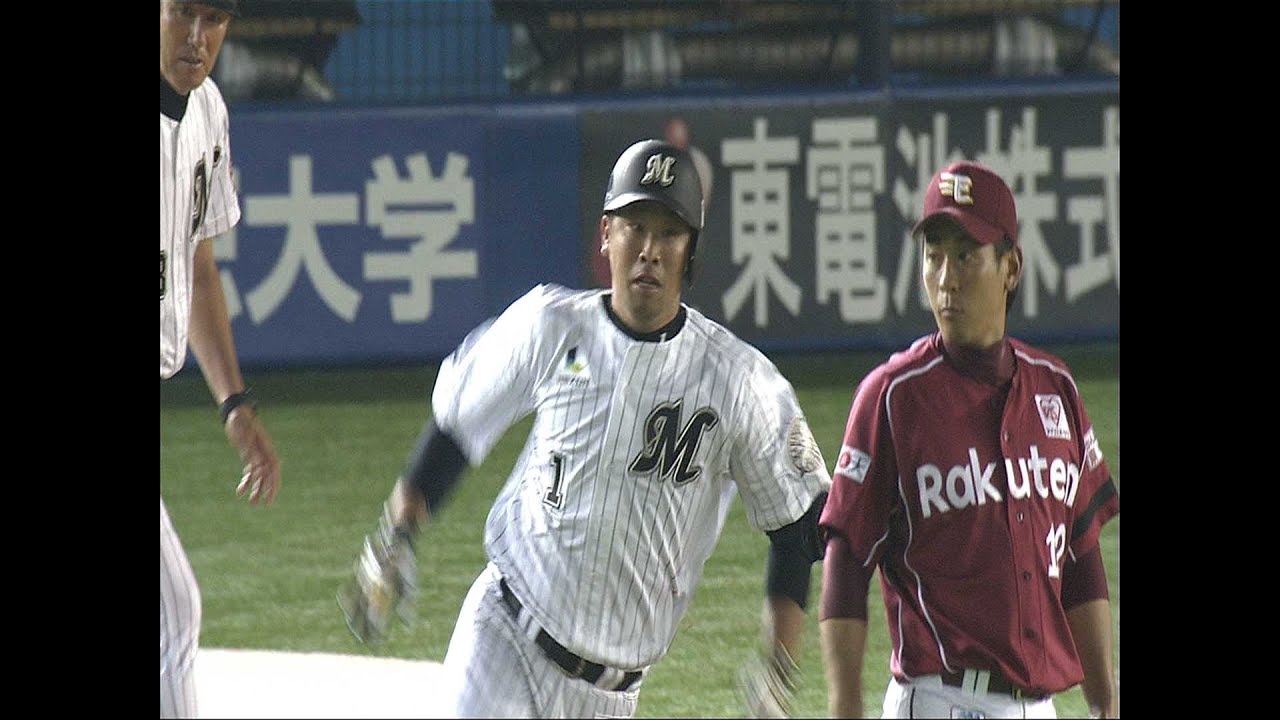 千葉ロッテ・清田育宏、怪我からの復帰後の初安打は、昨年の日本シリーズ第3戦のような右への長打。しかし、1塁をまわったところで楽天・草野とぶつかり3塁へ進めず、二塁打止まりに。(2011年7月30日 千葉ロッテマリーンズ対楽天イーグルス) 0730201107302011年7月30日Chiba Lotte MarinesQVCマリンフィールドイーグルスゴールデンイーグルスパ・リーグパシフィックリーグマリーンズロッテ千葉千葉ロッテマリーンズ東北楽天清田育宏珍プレー NPBHUB.COM | The Fanbase of Nippon Baseball & Nippon Professional Baseball