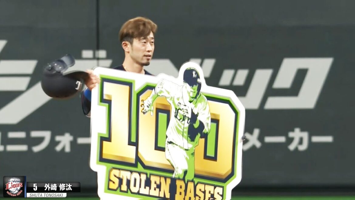 今日の試合で埼玉西武・外崎修汰が通算100盗塁を達成!プロ6年目で駆け上がった記録の大台、その瞬間をマルチアングルでお届け。