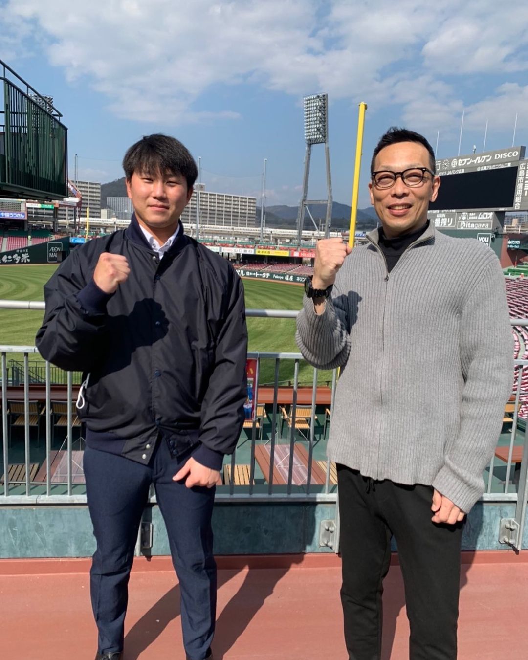 今年からカープ球団で男女の野球振興活動をしている桒原樹(くわはらたつき)です!!