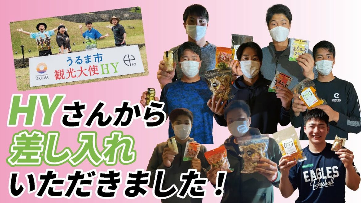 2021年10月に行ったHYさんとの対決に勝利したご褒美として、HYさんから沖縄県うるま市のファーム宿舎に大量の差し入れをいただきました!