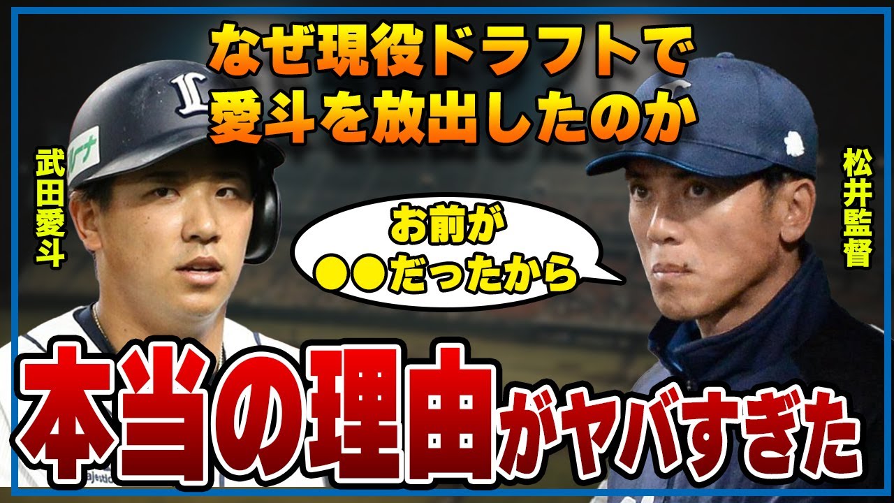 プロ野球が大好きな皆さんこんにちは! 日本では国技と言える程に愛されるスポーツが野球 そんなプロ野球の世界では皆さんが知らない世界もあるのです 当チャンネルでは、プロ野球の裏側や話題となった事件について たくさん紹介していきます! 今回は、武田愛斗が現役ドラフトにかけられた 本当の理由について紹介します。 #プロ野球 #セリーグ #パリーグ #西武 #松井監督 #山川穂高 #ロッテ #吉井監督 #愛斗 #プロ野球Saitama Seibu Lionsセリーグパリーグロッテ吉井監督埼玉西武ライオンズ山川穂高愛斗松井監督西武 NPBHUB.COM | The Fanbase of Nippon Baseball & Nippon Professional Baseball