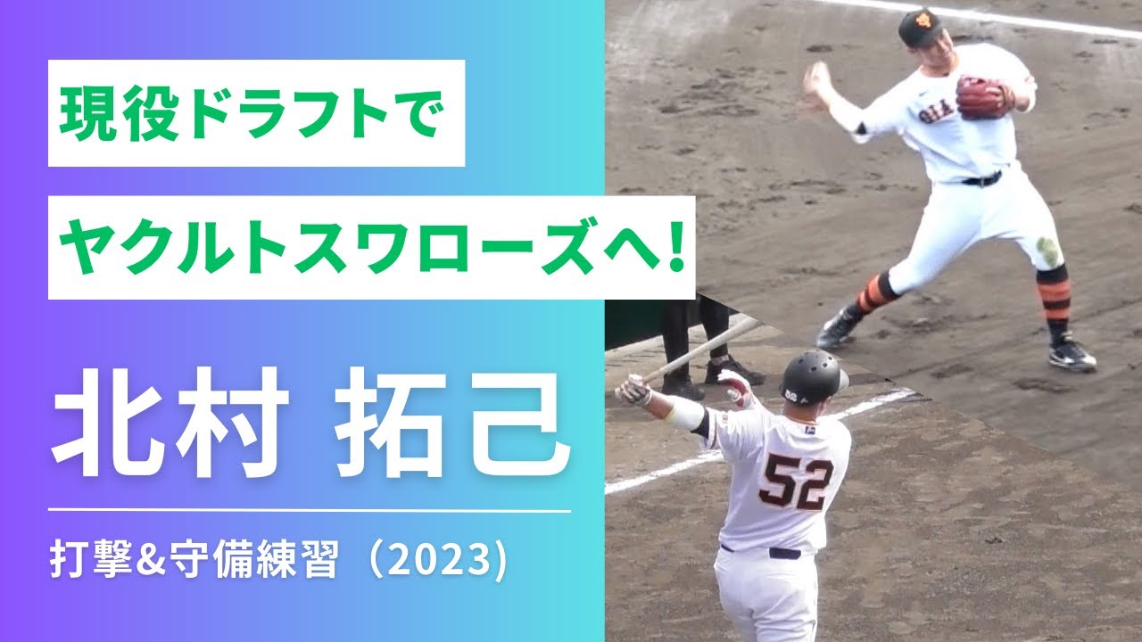現役ドラフトで読売ジャイアンツから東京ヤクルトスワローズに移籍が決まった北村拓己選手の練習の様子です。