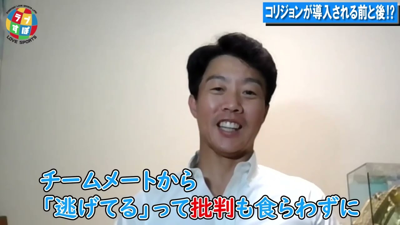 コリジョンルールができて、昔だったらブロックしていればアウトになるタイミングのものも、ブロックできないので多くがセーフになってしまうのが今の野球だと鶴岡慎也さんは言う。