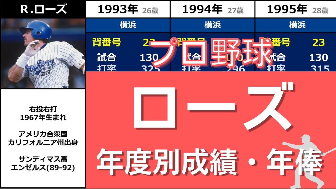 マイナーでも戦線に復帰できずにいたが同年のシーズンオフ大洋ホエールズと2年契約で入団した、ロバート・ローズ選手のプロ野球での成績です。