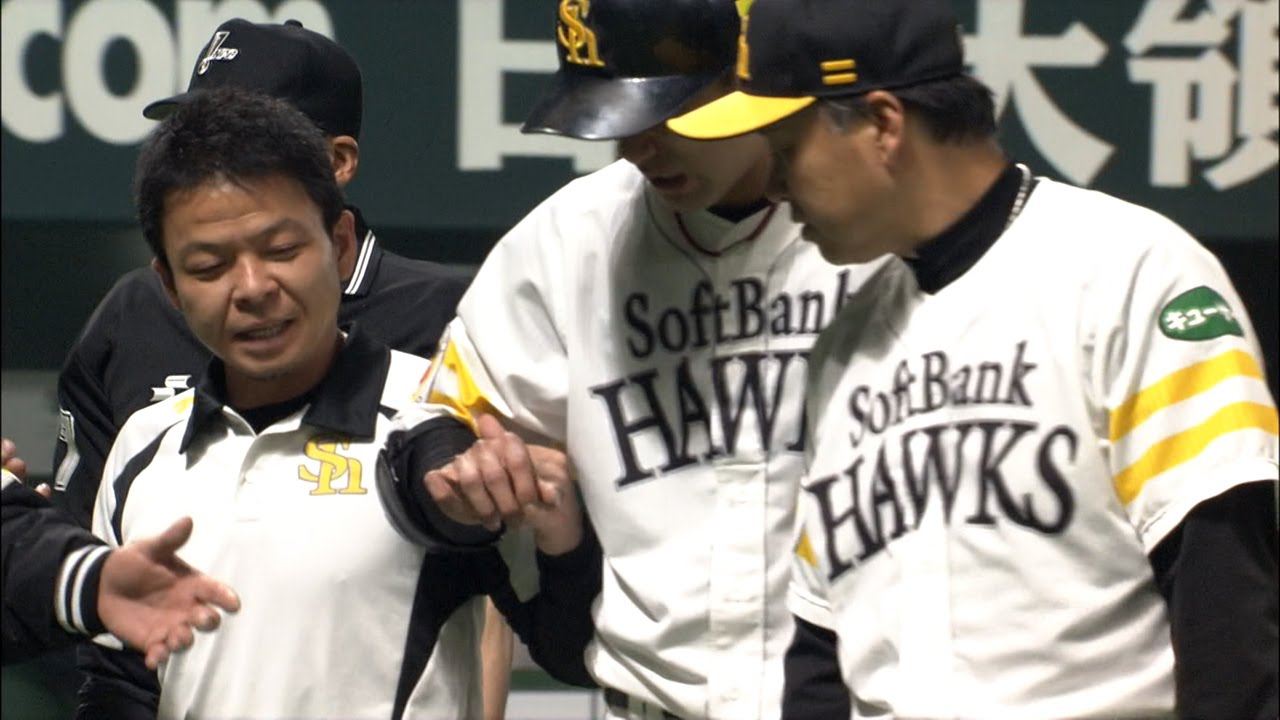 この試合、ホームランを放っている柳田に7回に再びチャンスが巡ってくる。だが、海田の投球は柳田の指先に直撃、死球を受けて悲痛な叫びをあげてうずくまる。一旦はベンチ裏まで治療に退いたが、ほどなくしてグラウンドに姿を現し、プレーを続行した。 (3月31日 ソフトバンク-オリックス)