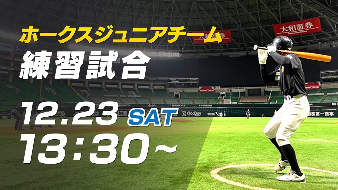 2023福岡ソフトバンクホークスジュニアチームの練習試合を生配信でお届けします。 【配信時間】 12月23日(土)13:30~vsホークスジュニア18期生(昨年のOB) 福岡ソフトバンクホークスは小学5,6年生を対象に毎年選考会を実施してジュニアチームを結成しており、これまで計8人のプロ野球選手を輩出してきました。今年もホークスOBの監督・コーチのもと、未来のプロ野球選手を目指す子どもたちとともに、年末の本大会優勝を目指します。 #福岡ソフトバンクホークス #sbhawks Fukuoka SoftBank HawksFukuoka SoftBank Hawks Official ChannelFukuoka SoftBank Hawks Official VideoOfficial ChannelOfficial VideoPACIFIC LEAGUE福岡ソフトバンクホークス NPBHUB.COM | The Fanbase of Nippon Baseball & Nippon Professional Baseball