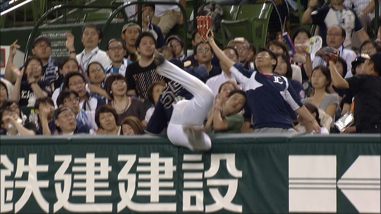 10回、木村の打球は一塁側ファウルグラウンドとスタンドの境目に落下するフライ。一塁手T-岡田はフェンス際で懸命にグラブを伸ばすが、捕球できず、勢い余って自らもスタンド内へ飛び込んでしまった。 (7月11日 埼玉西武-オリックス) #プロ野球baseballNPBORIX BuffaloesT-岡田T-岡田 野球オリックスオリックス・バファローズパ・リーグバファローズライオンズ埼玉西武大阪珍プレー西武ドーム NPBHUB.COM | The Fanbase of Nippon Baseball & Nippon Professional Baseball