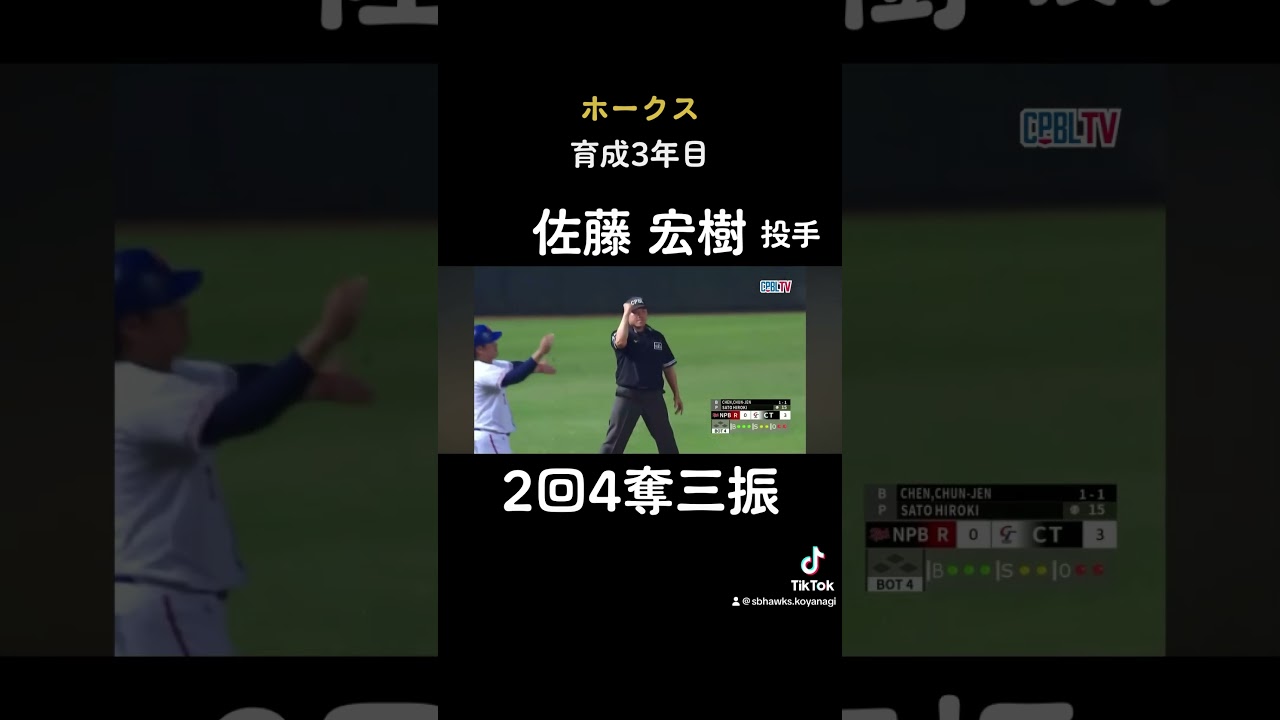 【育成】台湾WLでフル回転!左のリリーフエース候補!佐藤宏樹投手! #ソフトバンクホークス #ホークス #佐藤宏樹 #台湾WL