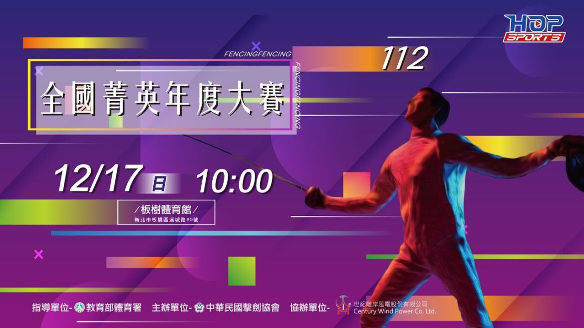 由 中華民國擊劍協會 主辦【112年全國菁英年度大賽】 將於12月15至17日在 新北市板樹體育館 進行三天精彩的賽事。透過比賽匯聚全國擊劍各項目各年齡層優秀選手角逐年度冠軍獎座,以激發選手榮譽感。並藉年終大賽觀摩交流,凝聚各界向心,共同推展擊劍運動。