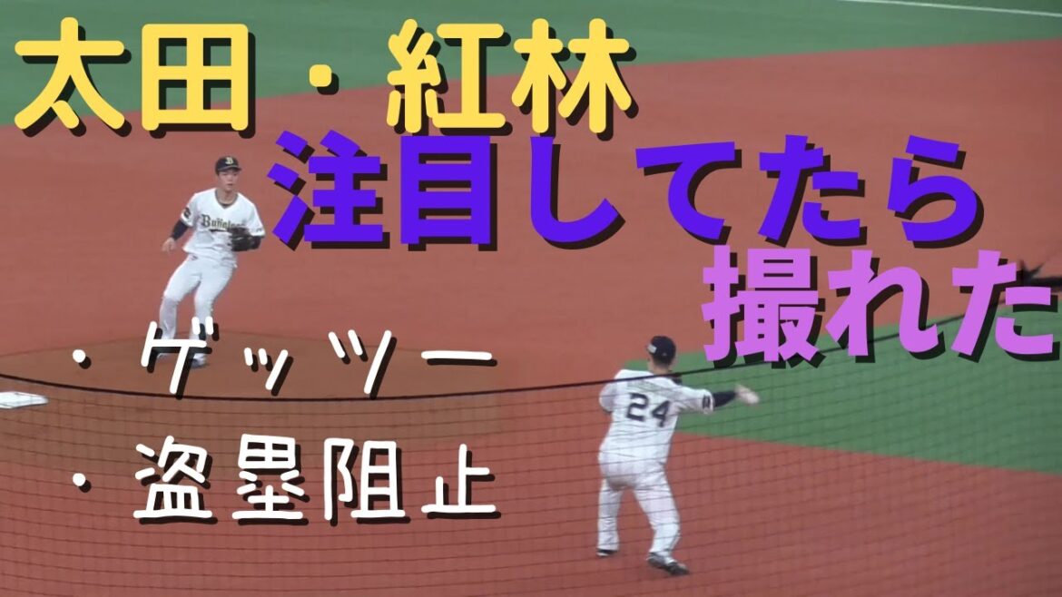 オリックス太田・紅林の二遊間に注目していたら、盗塁阻止とゲッツーを撮影できました。