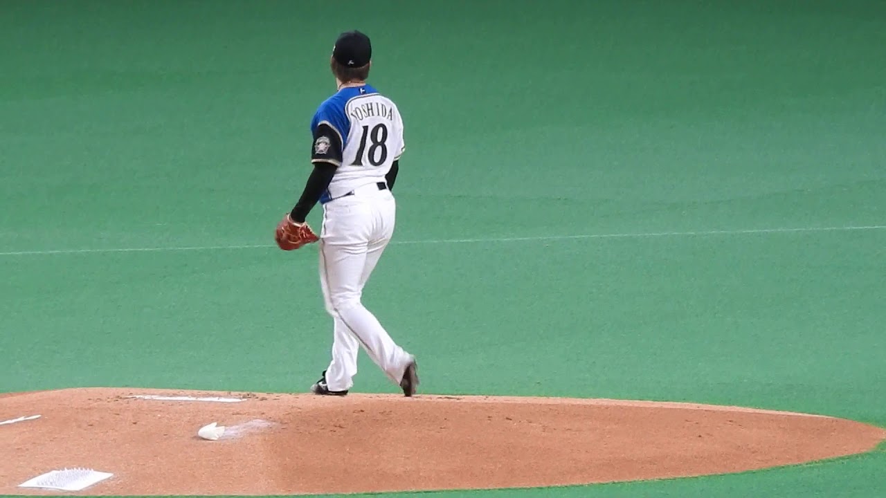 札幌ドーム、オープン戦2カード目 対Giantsの2連戦の初戦、先発の吉田 輝星投手の1回の表の投球 Hokkaido Nippon-Ham Fighters北海道日本ハムファイターズ宮田輝星 NPBHUB.COM | The Fanbase of Nippon Baseball & Nippon Professional Baseball