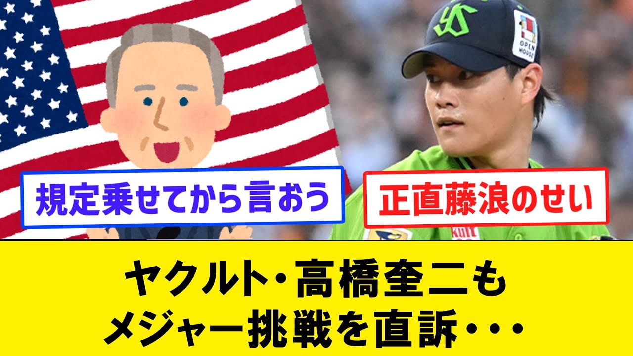 [音楽] ヤクルト高橋刑事もメジャー挑戦をじそ ヤクルト高橋刑事投手26が20日都内の 球団事務所で契約公開交渉に望み将来的な メジャー挑戦の石を球団側に伝えた目指し てるところは多分高いと思うからってい話 はしたんですけどその前にまずしっかり こっちで結果を残そううっていう話も僕 からもしましたししっかり結果残してから の話だと思いますと先を見据えた高橋 2023登板10.2回4勝敗 4.60-18120801849比本類 だ20kbb2.009s率 40%これでメジャーは草こういうのを身 のほど知らずというマイナー挑戦の間違い やないの韓国の間違いでは年方ダウンして て草さすがにねわこれはひどすぎ微妙系 選手のメジャー礎が止まらんな何様の つもりだよNPBですらもう通用してない やろ大谷の契約を見た嫁にれたか 160km投げるか規定1台くらいはやら ないとまともに契約もらえんよこいつ 佐々木ロキよりイニング投げたことない からな最高が100イニングちょいて有原 以下は認めないという法則が 必要金に目がくらんだか日米の年に差が つきすぎちゃったからなこの流れは しゃあないよ失敗してもノリスクだもんな そりゃ行きたい海外FA取っていけよ ポスティング云々の手じゃないやろ同じ 通用しないならメジャーでやる方がお得と いう藤波理論メジャーへの道を広げたのは のではなく藤波という 風潮藤波すら5億もらえてる現状だと日本 でやるのはバカバカしくなるんやろ投手 なら戻ってもありはしで高額な年方が待っ てる藤波ですらって言うけど携帯で弾早い からやぞ誰でも行けるわけじゃない最近は 日本代表入りするとメジャー思考を 植えつけられて帰ってくるから なが離脱するたに小川や石川が老体にって 頑張ってんねんもうええ加減エースになっ てくれ や