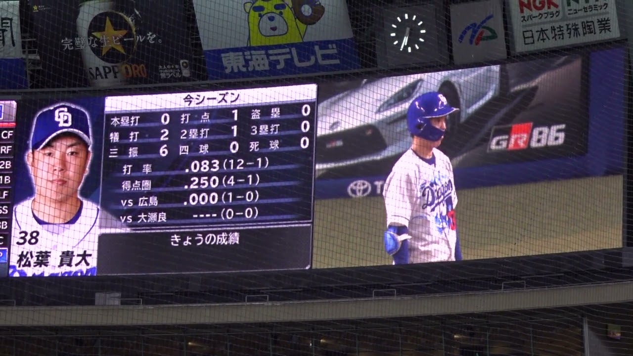 中日ドラゴンズ 松葉貴大投手 第1打席 登場シーン