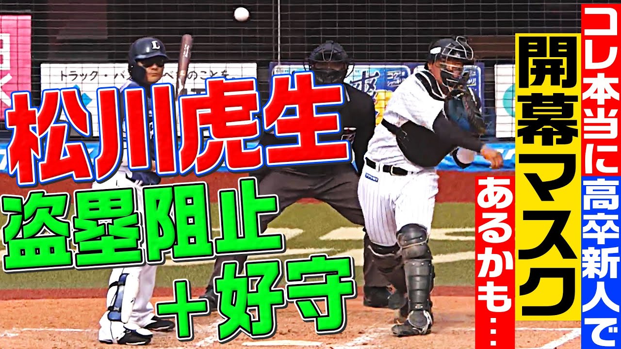 2022年3月13日の千葉ロッテマリーンズ対埼玉西武ライオンズの一戦。千葉ロッテのルーキー・松川虎生が正確な送球で盗塁を阻止し、その後の守備でも軽快な動き。高卒新人らしからぬ落ち着いたプレーでアピールを続けている!!