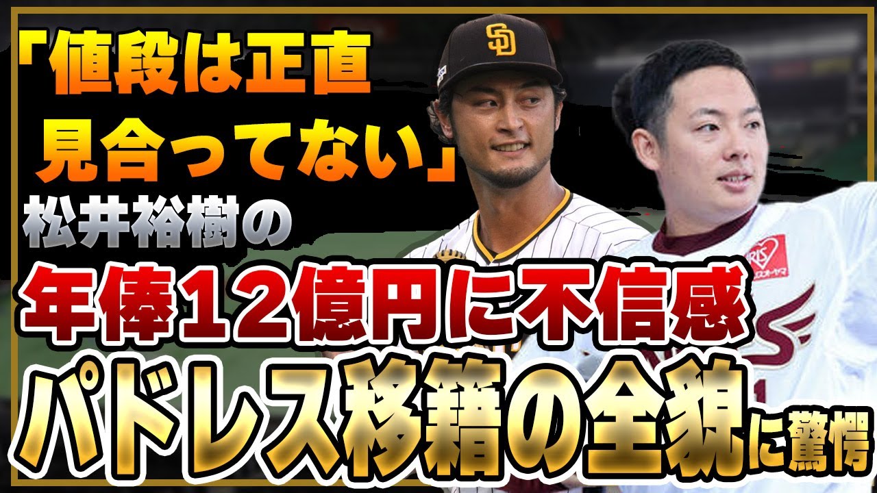 いますからねまたダルビッシュ選手は WBC期間中に日本代表の選手たちを連れ て試合会場となったマイアミのステーキ レストランで食事会を開催18日放送の フジテレビジャンクスポーツ2時間 スペシャルでは巨人都合選手が日本国内で も焼肉屋で食事会を行い 大谷翔平手当時エンゼルスとダルビッシュ 選手が支払いを担当していたと明かしてい ましたこうした恩義もあったのかもしれ ませんちなみにダルビッシュ選手はマイア での食事会はステーキレストランで味は 最高だったのですが簡単に言うと ぼったくられてとんでもない額になりまし たとXで告白しておりぼったくられた手法 についても現しっかりとしたレストラン だったんですがドサに紛れてとんでもない 額のワインを勝手に開けようとしていたり やり方が本当に汚かったです前編ではよく あると言われましたと具体的に説明してい ますこれを当たりにして頼れる兄貴分とし てももしかしたら見ているのかもしれませ んねちなみにダルビッシュ選手本人は松井 選手がパドレスに来ることは大歓迎な様子 で気になって眠れませんとX見て投稿して います米メディアでも確実と言われている ことからおそらくパドレスに入団するで あろう松井選手そんな井選手ですが 果たしてメジャーで通用するのか疑問視さ れていますというのも松井選手戦術しまし たが今期のWBCではメジャーの球に対応 できず非常に苦しんでいました特に請求に 苦しんでおりボールの切れも半減メジャー と日本ではボールが違うため対応に苦慮 するとは聞きますが特に松井選手は苦しん でおりこの点からもメジャーで活躍できる のか疑問視されている様子果たして松井 選手は通用するのでしょうか個人的な意見 にはなりますが通用すると思います最も ボールになれればの話ですが日本ではあれ ほど切れのあるストレートとスライダー チェンジアップを駆使して多くの脱三振を 奪っていた松井選手能力だけで言えば メジャーレベルに到達していると言えます ただボールの対応には他の選手に比べて 時間がかかる可能性が高いと思います松井 選手の武器は回転数の多さ ですがメジャーのボールは滑りやすく回転 をかけるのは最初かなり苦労するでしょう おまけに請求力の向上も務めなければなり ません線画選手も対応に時間がかかったと 話しており最初のうちはコントロールでき なかったと話していて毎日ボールを触って いたと明かしていますしWBCで対応に 苦慮していた点を考えると時間自体は