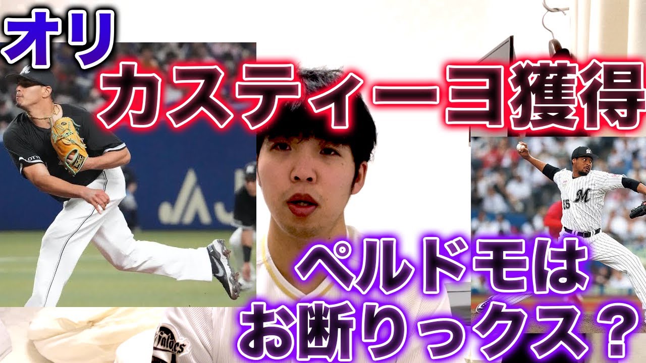 はいどうも全力絶叫YouTuberBモ ですということでね本当に最近こういう ニュースが入りました系のね動画を撮って こなかったんですけどもまなせニュースが 入らないわけですからねまその間僕はね 台湾に行ったりとかして僕は勝手に楽しん でるだけの動画をねあのあげたわけです けどもオリックスバファローズねまあ 今シーズンそのね日本シリーズが終わって からま色々その怒りに大補強やなんやかん や言うてきて何西川両馬選手とるま西川 選手取りましたはいおめでたいことにで そこからオスも取る加藤高幸投手も取るで ペルドもも取る言うてねもう本当にこれ もう60億ぐらい用意して怒りに大補強 するとついにオリックスもそっちの仲間り になるんじゃないかなと言われてましたが 結局西川選手は取れたんですけどもオ投手 はソートバンク残留加藤投手も残留ですね でま山本吉信投手がメジャーに行き山崎 佐谷投手がニアに行きでなんやかんや結局 上積みどころかちょっと戦力が若干削がれ てるような感じもするんですよねま今年は まあねその圧倒的なゲーム助けて優勝して まそこそれてま来年どうなるかま来年今年 ほどのその独走優勝になるのかどうか ちょっと怪しいんですけどもだから ちょっと今年のそのオフのその動き大丈夫 かなと山本吉信投手のポスティングマネも 入ってきますからねそれ十分に生かしてね 補強すべきだと思ったんですけどここで ついにニュースが入りましたえオリックス 元ロッテのカスティーヨ投手とあと アメリカでやっとったあのトーマス選手 って野を獲得するとのことですはい トーマス選手はちょっと海の向こうの マイナーリーグでやってたんでねちょっと あんまり詳しくないですけどま結構その 大砲らしいですけどもうんもカスティオっ すよねロッテのカスティヨこのロッテの カスティヨ投手がこのロッテからこのまず 自由契約にされたらしいんですよねでそこ からまオリックスが拾ったという形になる んですよねそうだから別にロッテとマネー ゲームをしたというよりはまオリックスが そのロッテから暴れたのを取ったという 感じなんですけどもあの正直言うとこの 補強は僕だいぶでかいと思うんすよね カスティよ成績だけを見ればま普通のね しかもそんなイニング投げてないねま先発 として5イニング行けるかなどうかぐらい のピッチャーなんですよねたですけどね オリックスパァンかしたら特にカスティと してめちゃくちゃいいピッチャーって イメージあると思うんすよオリックスあの