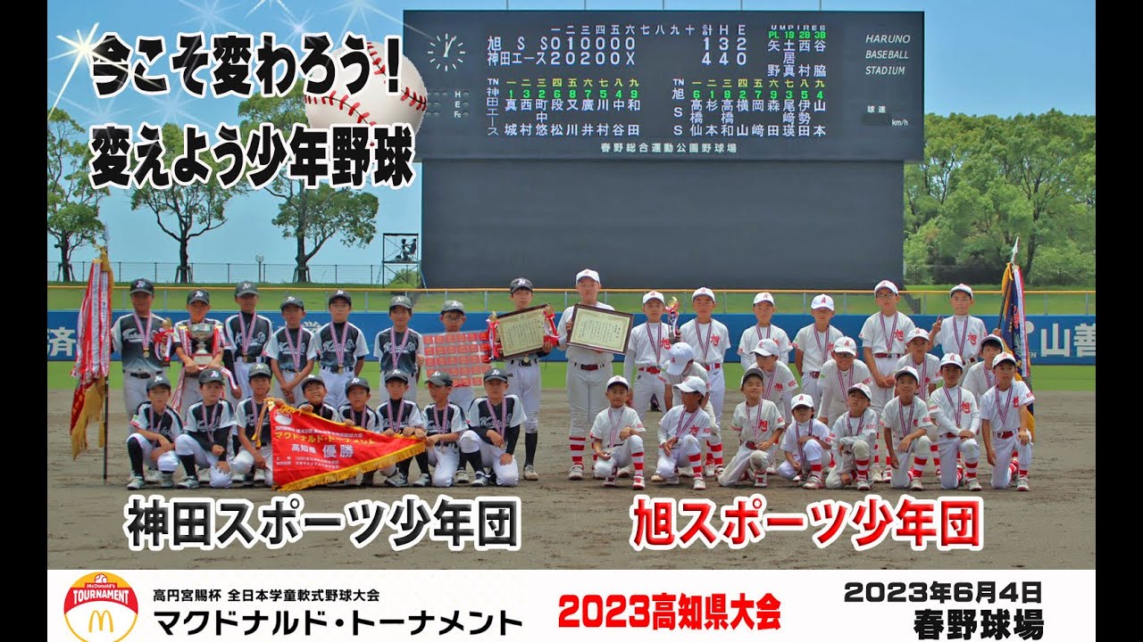 勝このマクドナルド初優勝そして神宮の キップを手にしまし た今ランニングスコアが出ています が得点があったのはもう123回前半のみ でしたね試合振り返っていかがだった でしょうかそうですねやはりえ先ほども 言いましたけども初回朝日さんがチャンス を掴んでそこを西村君が0点でしいでその 後効果的えっとミスを絡めた選手点から 朝田の流れがなりましたよねはいでなんと か1点くらいついえヒットでえ取り返した 後月離すそちからやはり打の方が1枚上手 だったんでしょうかねそうですねま朝日と してもね初回のあのチャンス点取らなかっ たのがひょっとしたらこう大きな ターニングポイントになったかもしれない ですよねそうですねやはりあの試合の 立ち上がり を0点で抑える3人で抑えるっていうの 非常に難しいところではいチャンスはあっ たんですけど はい惜しかったですよね はい勝ちました東大エススポーツ少年団は 高本宮支配第43回全日本学道南式野球 大会マクドナルドトーナメント本戦へと 出場します神宮球場で行われますま非常に ね全国見渡すとレベルが高いですけれども なんとかね高知県税の維持見せてもらい たいですよねそうですねここえ数年あの 初戦配が続いてますんでと ますそもどうぞどうまたあの昨年と違って ねあのコロナの方もだいぶ収束しかけて ますのでもう少しえレベルアップする きっかけにどんどん練習量も増やせるんで はないでしょかねそして惜しくも破れまし た朝日もねあの大きな大会への切符与え られるんですよねそうですね あのこ派遣大会としましてえっと山県の高 さんえこれが西日本大会になりますそれと 福岡県の黒飯でやらる地岡そそれ以外でも 徳島の方に泡踊りカップとかあえ島カップ とかいうのがありますのでその辺りへえ はいいずれかの大会へ行っていただいてえ 今日の悔しさを新たなきっかけにして もらいたいなと思っておりますはいあの 高野さんの大会なんかもねこの少年野球で は非常にま大きな大会ですからねそうなん ですよあの各県のまあここがえ神宮へ行け なかったチームの各県の2チームなんかが 来たりしますので非常に強いチームになり がいますよねはい非常にねまたその全国の 舞台でも力を振ってもらいたいと思います それではこの試合ハイライトで振り返り ますエースはエース 西村そして団は高橋セタという両先発で