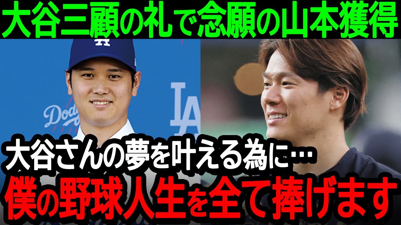 共に直接赴き一緒にワールドシリーズ制覇 を目指したいとギラギラした目で語りかけ たとあるメディアは報じています2023 年3月のWBCで初めて同じチームで プレイした2人は毎日のようにピッチング について会話をする姿がありました常に 頂点を目指す者同士会話は弾みすっかり 仲良くなることができたようですメキシコ 代表にさよなら勝利した夜には山本選手は 大谷選手にご馳走をおねりしたそう連れて 行ってほしいという感じだったのでま しょうがなくいっった感じですかねと言い ながらも後輩に優しく接する大谷選手の 立ち振る舞いにはドジャースファンからも これが布石になったという声が上がってい ます山本選手が新天地にドジャースを選択 した1番の理由こそ大谷選手に対する リスペクトでありどうしても一緒にプレイ がしたいといった感情を抑えることができ なかったのでしょう各球団からの夢のよう なオファーが届く中大谷選手が見せた3個 の礼思わせる振る舞いは極めて異例であり その全てが見事だったと全米の野球ファン が感動してい ます後輩の野球人生を心から リスペクト現地時間12月12日に ドジャースタジアムで行われた山本選手の 契約交渉大谷選手はロジャースの主力選手 らと一緒に駆けつけると熱い視線で山本 選手に語りかけました自ら進んで面談への 出席を志願していたことを米メディアが 伝えています史上初3年連続で投手部門の タイトル4巻を達成しプロ野球を大いに 盛り上げた山本選手は確かに日本を代表 するスター選手ですがそれでも大谷選手は やはり別格であり手が届かない存在 メジャーリーガーですら憧れる大谷選手の 話す言葉1つ1つはとても重く山本選手の 心も大きく動かされたようです右肘を手術 した大谷選手は開幕戦に向けたリハビリで 忙しく年以上に密スケジュールをこなして いるはずですが後輩のメジャー挑戦を 後押しする丁寧な表なしは怠りませんでし たさらにはロジャースの本拠地 ロサンゼルスを拠点とするアメリカン フットボールチームラムズの試合感染に 山本選手を招待していたそう残念ながら 日程の関係で一緒に感染することはでき ませんでしたが試合当日には華やかな サプライズも用意されていたのです会場と なったファイスタジアムのゴールには山本 の名前と背番号18番が入った ユニフォームがかけられてその様子が チームの公式SNSで大公開大谷選手の 提案もあって町全体が歓迎ムードだったと