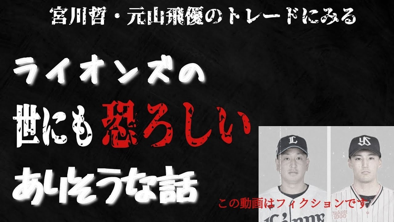 [音楽] 今回の動画はとチャンネルの勝手な憶測で あり非常に不快な話も出てくると思われ ます特に松井和夫ファンの方はご覧になら ない方が良いかと思い ます恐ろしい話をします後でうう文句を 言う人は見ないでください えこの段階で非常にですね視聴者が減った ような気がするんですけどもえ今回はです ねライオンズの世にも恐ろしいありそうな 話をしていきたいと思います12月21日 に西武ライオンズの宮川鉄投手と ヤクルトスワローズの元山ヒ投手との交換 トレードが発表されたのは前回の動画でも 触れましたなぜ今内野種補強なのかなと 軽い疑問は持っていました ウーネンティンが対談したための補充かな と速報だったため大した調べもせずさらっ と流しましたがこれは恐ろしいトレードな のかもしれませんここからはあくまでも当 チャンネルの勝手な憶測でありエビデンス なんてものは一切ありませんので1素人の 独り言だと思ってみてくださいどうもこの トレードは西部に部が悪いように思えませ んか宮川は入団4年間で一軍の経験も多く ま昨期までは中継で出場しま今期は先発で 4試合登板でま1軍では結果出ませんでし たが2軍では安定感抜群でですねタイトル も獲得しています片谷元山選手は今期が3 年目で1年目こそ97試合で53安打3本 塁打打率2割ゴブ5輪とルーキーながら まあまあの成績は残しましたが昨期と今期 は成績が振るわずそしてショートもエラー は多いんですが打撃の良い長岡秀樹選手に 奪われ機械にあんじていました今期の1軍 の成績22試合打率1割7部キリ本塁打0 打点3三振13フォアボール0出塁率1割 7分5厘OPS0.380という成績です 通算成績なんですが132試合に 打率2割3部4厘本塁打4本打点22三振 60フォアボール17出塁率2割8部6厘 OPS うまいそうです課題は打撃ということここ で松井和夫が絡んでくるんです元山選手は 昨調整高校出身で恩師はPL学園の元監督 だった藤原孝介氏この方が松井和夫監督の 1年上にあたり共に甲子園に出場している 直属の先輩後輩の間からなんですねもしか したら藤原市が後輩で西武ライオンズの 松井和夫に元山を頼むなんとか頼むと 願い出た可能性があるんじゃないかなと そしてですね元山選手と松井和夫は両人 とも大阪府東大阪市出身なんですねもう 同居中の同居とうーん怪しいなって思い ましたねもう1度言います私の勝手な憶測