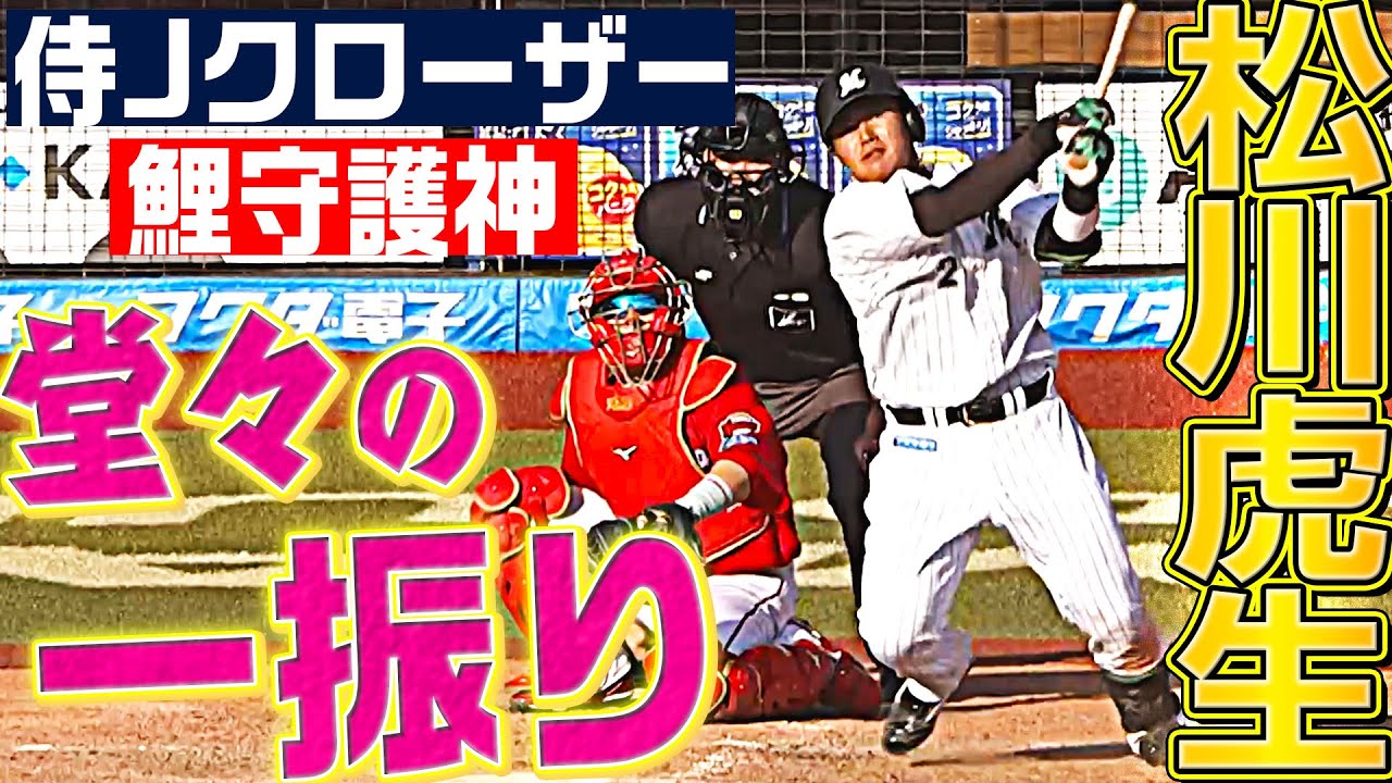 威風堂々という言葉がタリピツ。千葉ロッテのルーキー・松川虎生が8回裏に広島・栗林良吏と対峙。ファーストストライクを積極的に振りにいき、結果はセンターフライとなるもしっかりと捉えてセンター方向へ。今後の活躍に期待が持てる、大物感あふれるスイングを披露した。