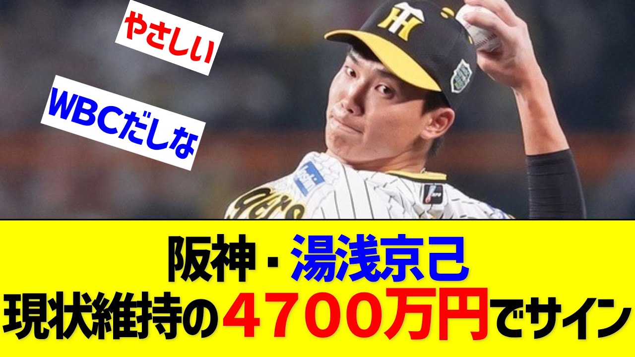 阪神ユアサつ現状維持の4700円で サイン阪神ユアサつ投手が21日用後西宮 市内の球団事務所で契約公開交渉に望み 現状維持の年方4700円で公開した今年 のWBCもシーズンも無駄にしないように 来年以降につげたい優しいなまともに投げ てないのに現状とか阪神は優しいわな さすがに湯は優しすぎだな怪我WBC扱い だろうなやっぱり優勝して日本一にならん とな湯は去年投げさせすぎたのもあるしな しかし阪神は安泰だな岡田さえ監督続けて くれたらまだ何回も優勝は見れそううぶ出 たらシーズン悪くても現状維持なら出た方 がええな笑WBC組は戦士会が成績悪い 選手は現状維持を要望したみたいな記事 あったし球団がそれに答えたのかなま元々 そんなに高くないし少し減らすぐらいなら 維持にしたんかなご視聴ありがとうござい ますプロ野球の自ネタとを紹介しています 面白い話題があったらコメントで教えて いただけますと嬉しいですよろしければ チャンネル登録高評価よろしくお願いし ます