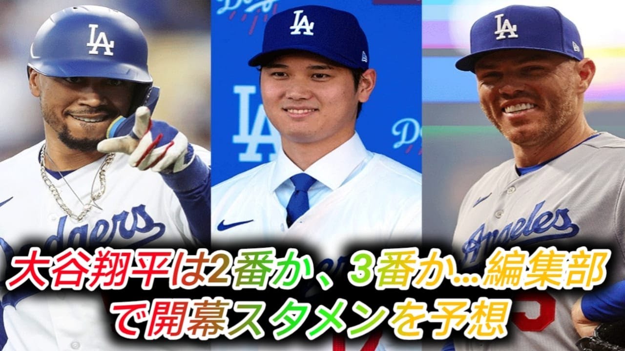 大谷翔平は2番か3番か編集部で開幕 スタメンを予想2023年のアリーブ MVP大谷翔平投手が加わったドジャース は開幕戦にどのような夫人で挑むのか チームは大谷山本義信タイラーグラス ノーラが加わり世界1を目指す224年が を明け開幕スタメンを編集部で独自予想し た1番2類はムーキーベッツとなるだろう 2023年も1番を務め打率点30739 本類だをマークパワーと総力を兼ね備えた 打者だ2024年からは2類に専念する 見込みとなっている2番には大家を据えた ロバーツ監督は春のキャンプで決定する 予定と明かしているが後をう打者の存在や エンゼルス時代から慣れした打順である こと1番が右打ということを考えても最適 だろう中軸は3番フレディフリーマン4番 ウィルスミス5番マックスマンシと予想 並びは作期と大きく変わらないが2番に 大谷が入り打順が1つずつ後ろにずれる形 だフリーマンはここまで4年連続で打率は 3割越えで2年連続でオプス900台を 記録している大谷にの後ろを打つには ぴったりの存在だスミスは本塁ダを量産 するタイプではないがオプス800前後を マークする安定感があるマーシーは打率 こそ低いものの優れた選球眼に加えて一発 のある打者だ6番中堅には26歳の ジェームズアートマンを入れたデビュー2 年目の作期は23本塁打をマークし新人王 投票では3位探ルックスで日本ファンから も注目を集めるかもしれない7番には クリステーラー8番にジェソンヘイワード を入れたが相手投手が左であればレーズ から獲得した講師のマヌエルマーゴが アウトマンかテーラーと変わって入る形に なるかマーゴはレーズ時代はレギュラーと してプレイもドジャースではポジションを 争うことになりそうだ9番にはブランドン ゴメスGMが遊撃での起用名言している ギャビンラックスを入れたベテランの ミゲルロハスや有望株のミゲルバルガスラ も出場機会を伺う