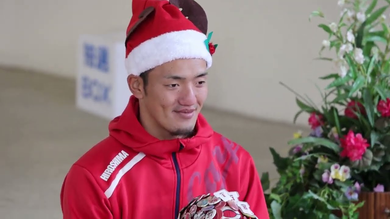 に貢献していただいて来年は優勝して いただければと思いますえではねえ今日は あの寒いですけどもこのイベントを皆さん 楽しんでくださいでは矢野選手よろしくお 願いし [拍手] ますはいでは続きましてえ矢野選手からご 挨拶をいただこうかと願い ます選手よろしくお願いしますおはよう ございますおはようございますえ今日は 寒い中集まっていただきありがとうござい ますえ少しの時間ですがま楽しい時間を 過ごせるように僕も頑張りますので今日は よろしくお願いし ますありがとうございますではですねま 抽選会始める前に今日は月17日ですが 昨日の12月16日が山選手の特別な日だ ですよねはい皆さんご存知あ誕生日カード をねお持ち のはい昨日は12月16日がえ矢野選手の お誕生日ということではいえっと25歳 はいになられたですねはい25歳のお 誕生日おめでとうござい ます25歳えの選手がですねあの今回元々 予定はしなかったんですけど皆さんからご 質問にお答えしていただけるということ ですのでえちょっとね質問を皆さんから 受けようかと思いますえ山選手よろしい でしょうかはいはいじゃあ質問このことを ちょっと山野選手に聞いてみたいという方 がいらっしゃいましたら手を上げてですね えお呼びくださいマイクを持って職員が 迎え ます [音楽] [音楽] [音楽] イゴ です何の食べ物が好きです かえっとブランが大好きです はい はい好きということではいじゃあ続いての ご質問ある 方どうやったら野球がうくなります か えっとま僕も小さい頃からお父さんと一緒 にもう毎日野球やってたんでもう練習すれ ば絶対うまくなれると思うんで練習あるで いいです はいとうござい [音楽] ますはいでは続いてご質問ある [音楽] 方あの選手は広島東洋カプの選手で誰と 一番仲がいいです