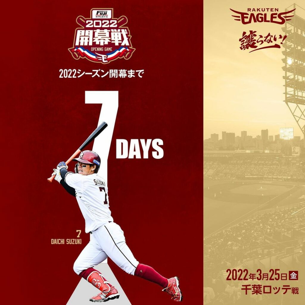 .✨⚾️✨⚾️✨⚾️✨⚾️✨⚾️✨ 2022シーズン開幕まで…7日‼️‼️ ✨⚾️✨⚾️✨⚾️✨⚾️✨⚾️✨ 鈴木大地選手へ応援メッセージをよろしくお願いします👏🏼 #rakuteneagles#譲らない#東北開幕#鈴木大地 NPB Pacific LeagueOfficial MediarakuteneaglesTohoku Rakuten Golden EaglesTohoku Rakuten Golden Eagles Official Media東北楽天ゴールデンイーグルス東北開幕譲らない鈴木大地 NPBHUB.COM | The Fanbase of Nippon Baseball & Nippon Professional Baseball